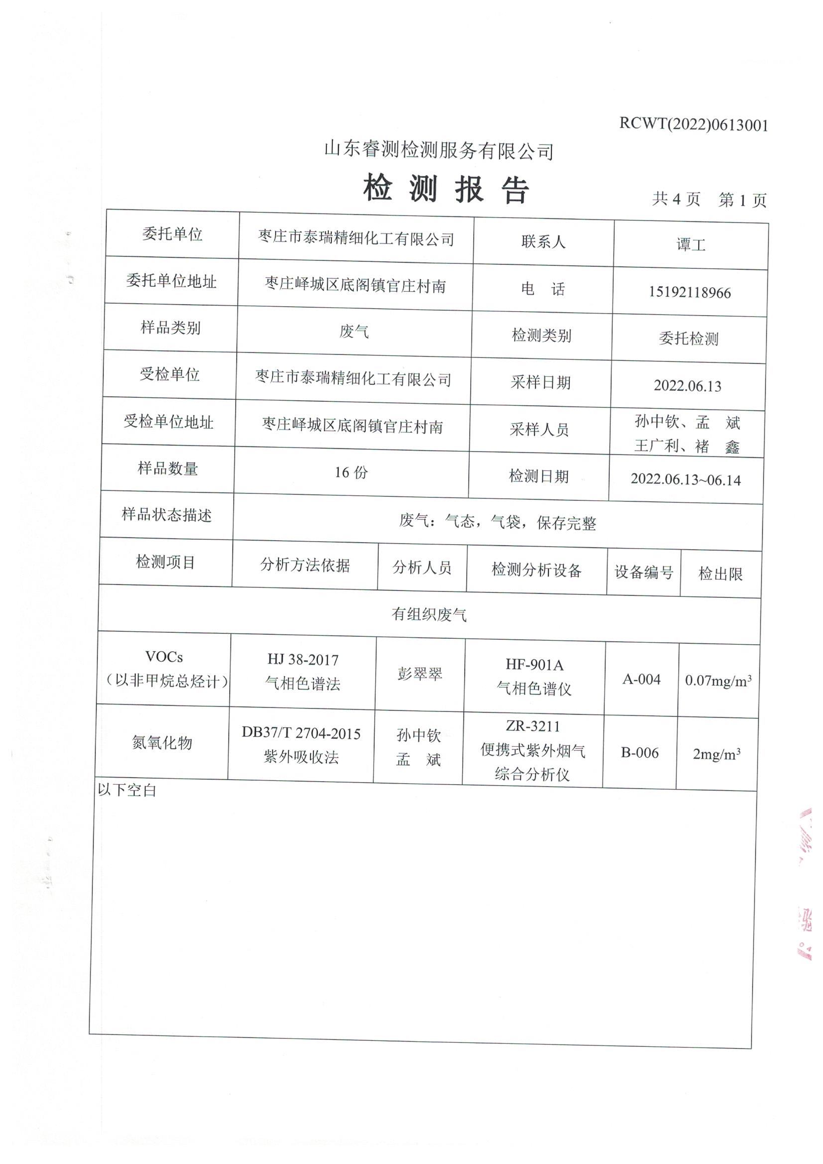 2022年6月份環(huán)境檢測(cè)報(bào)告