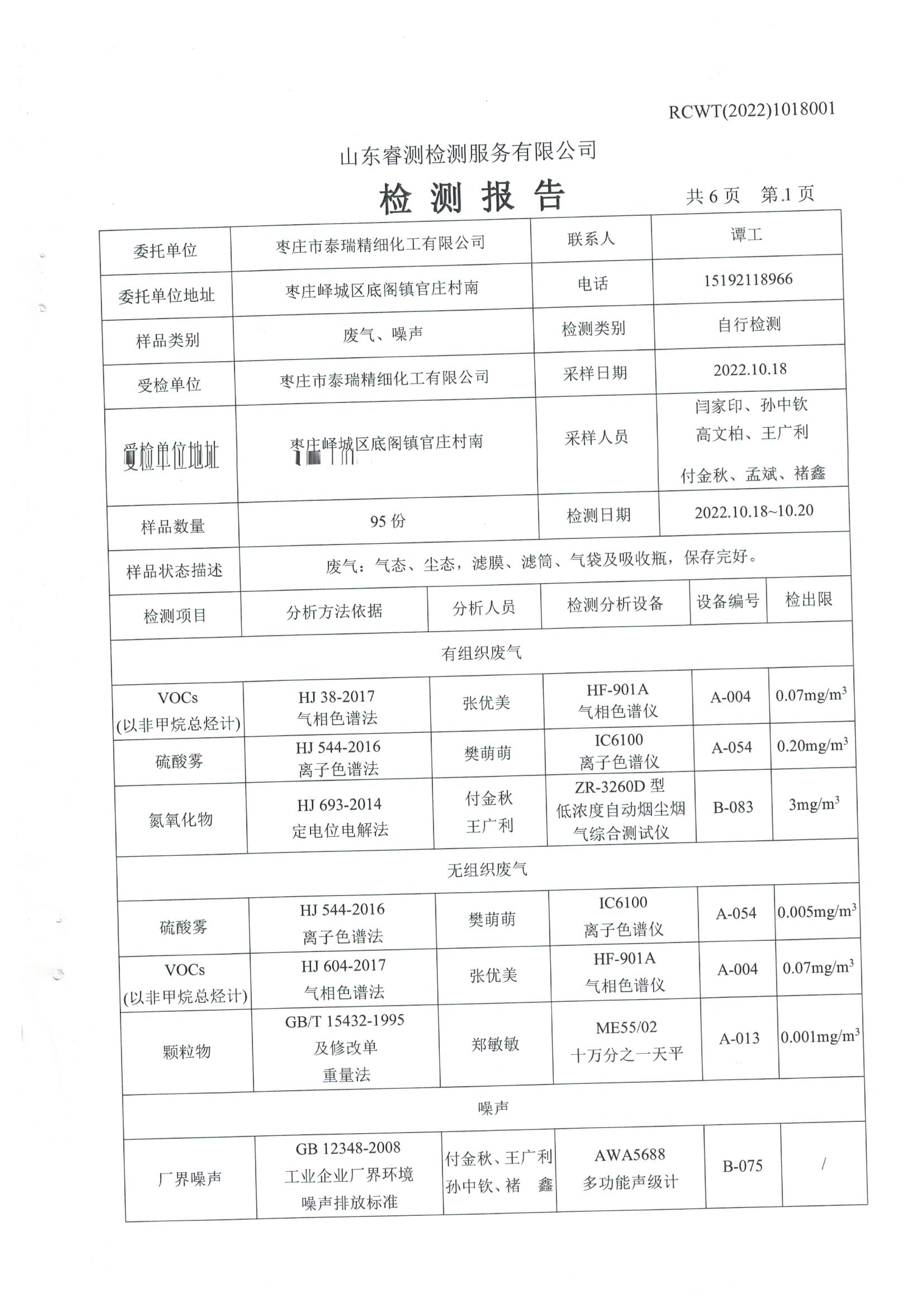 2022年10月份自行檢測報告