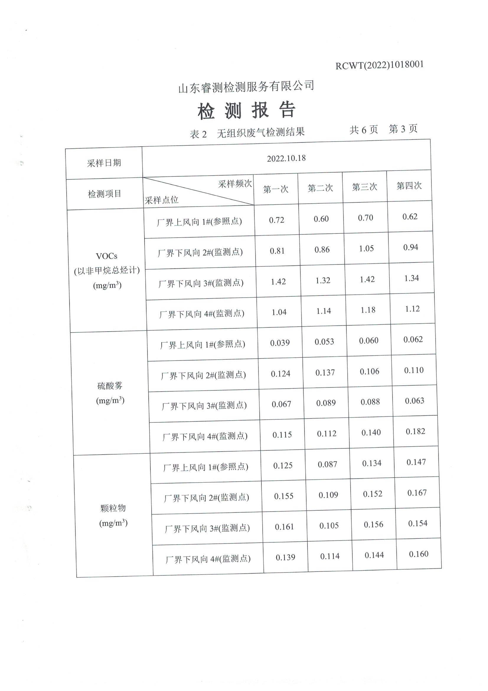 2022年9月份環(huán)保檢測報告