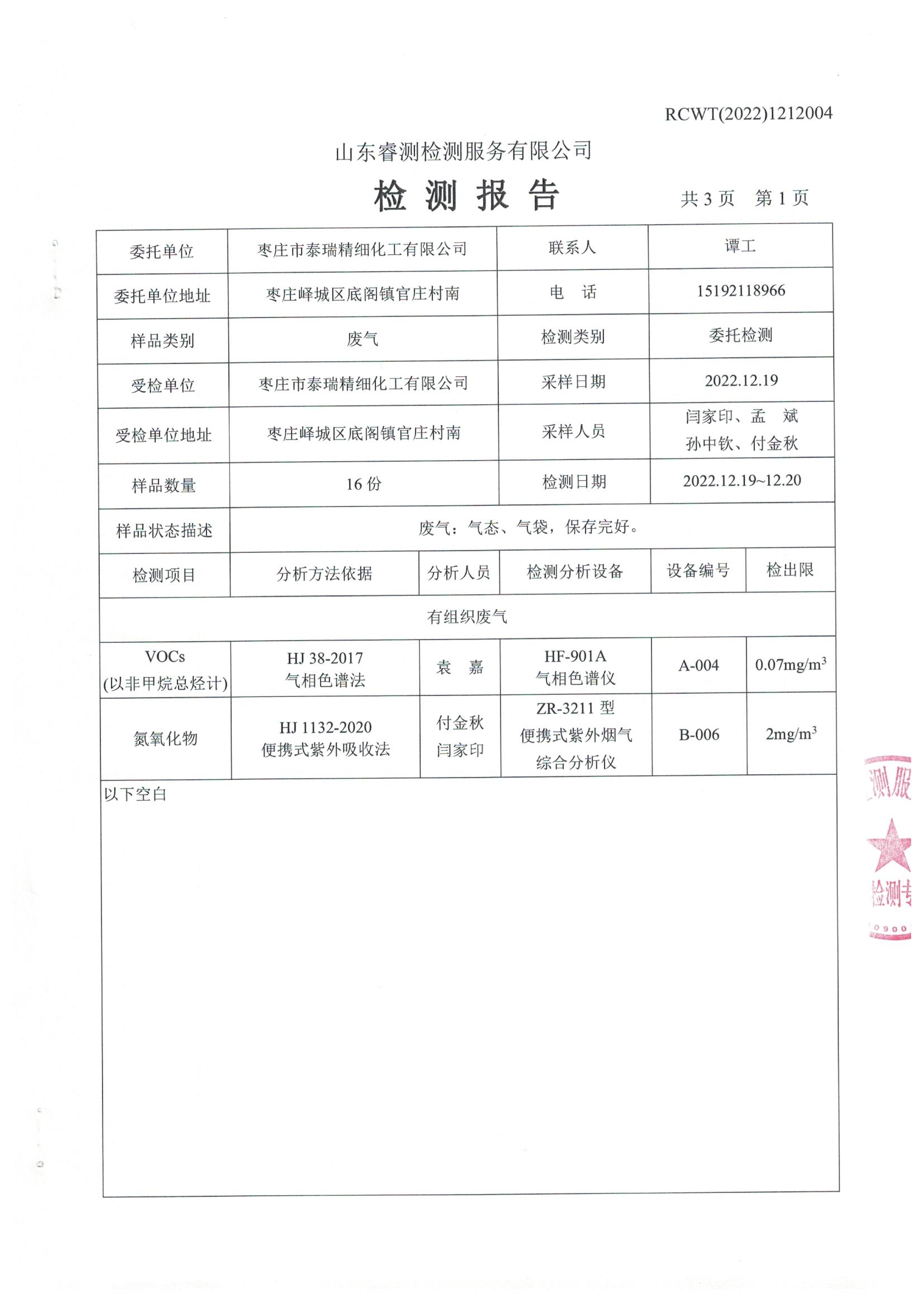 2022年12月份自行檢測報(bào)告