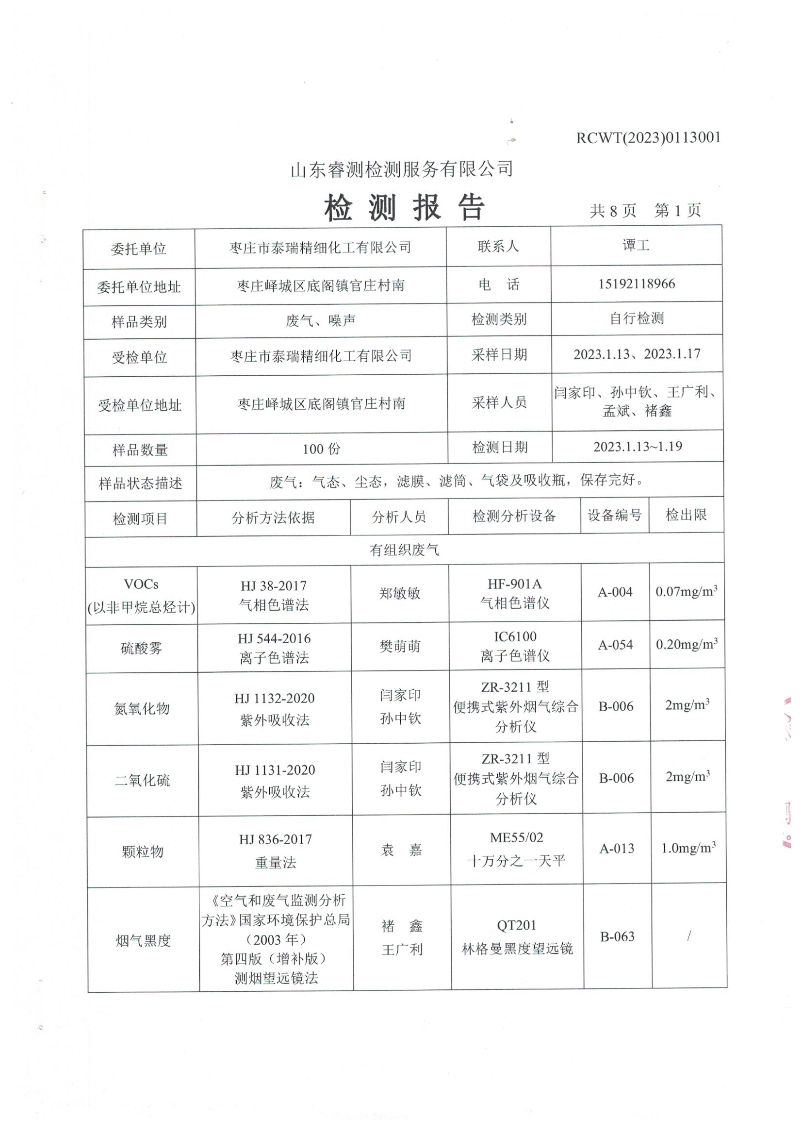 2023年第1季度檢測報(bào)告