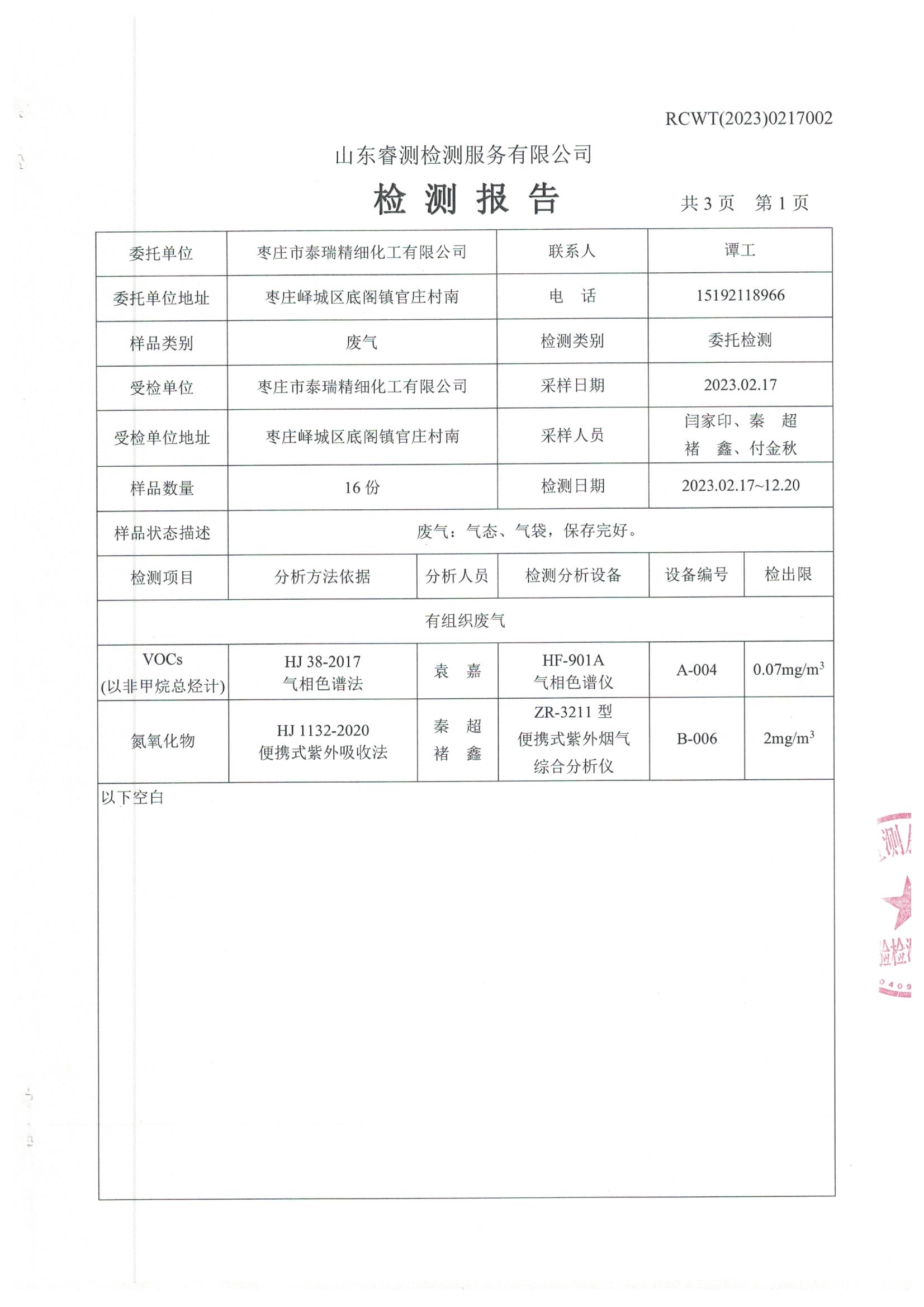 棗莊市泰瑞精細(xì)化工有限公司官網(wǎng)