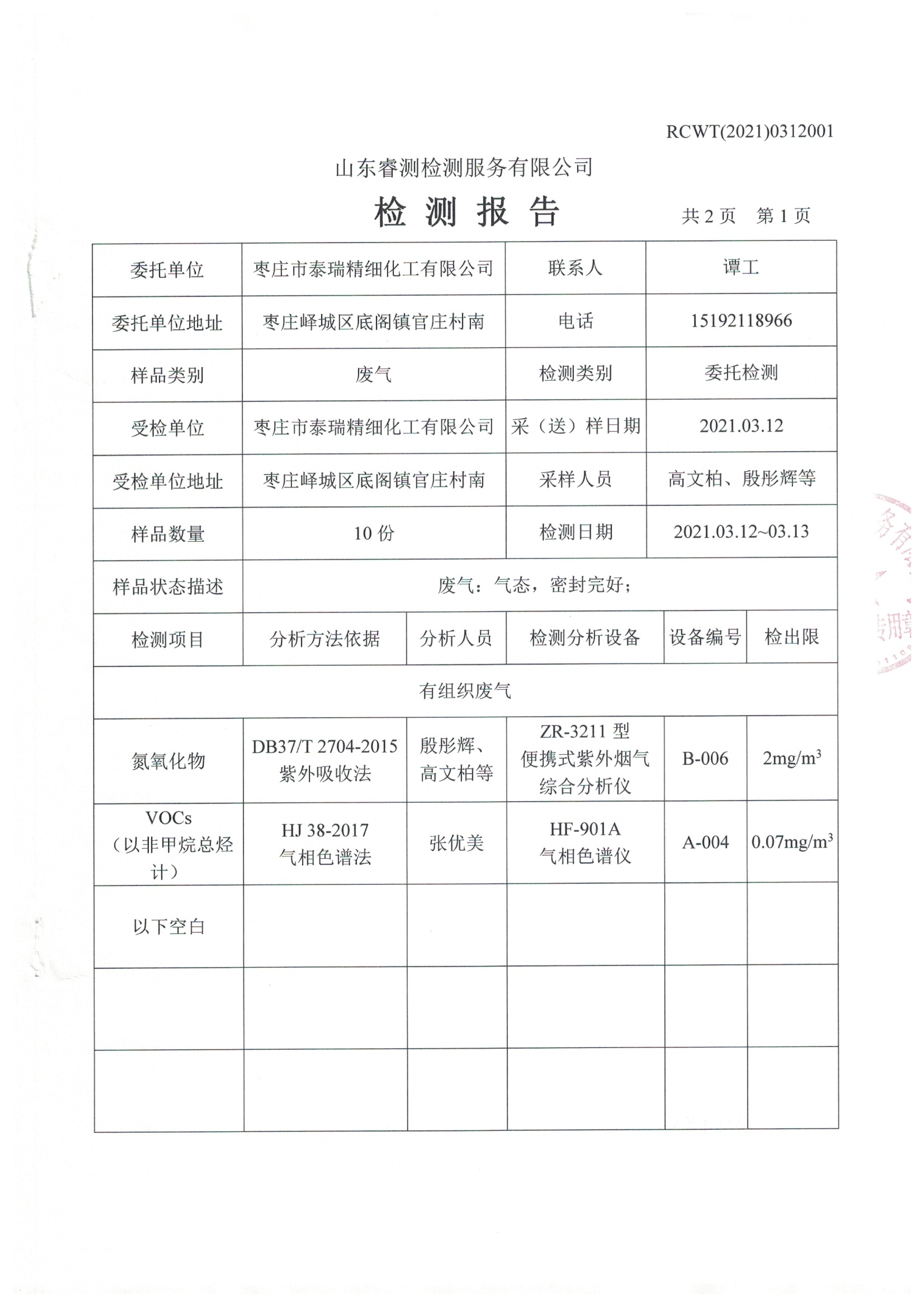 棗莊市泰瑞精細(xì)化工有限公司官網(wǎng)