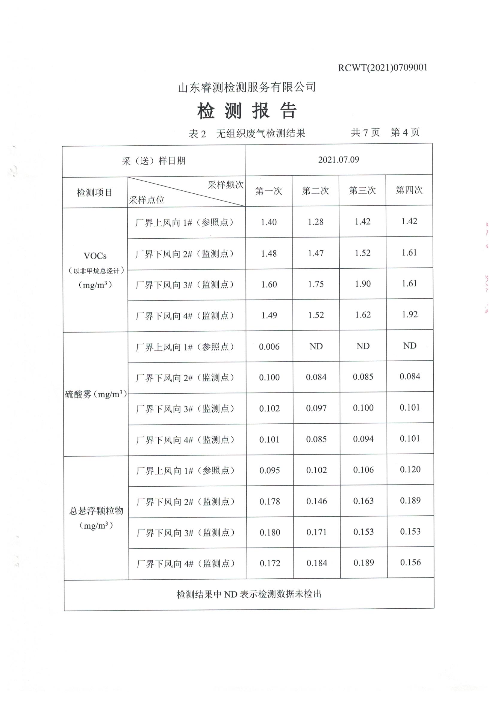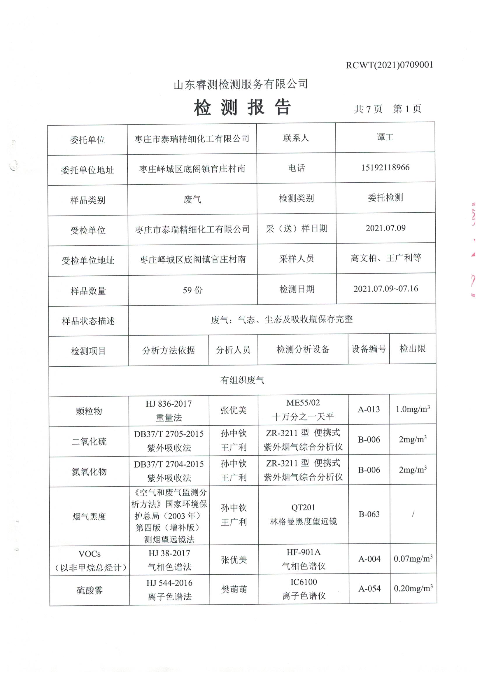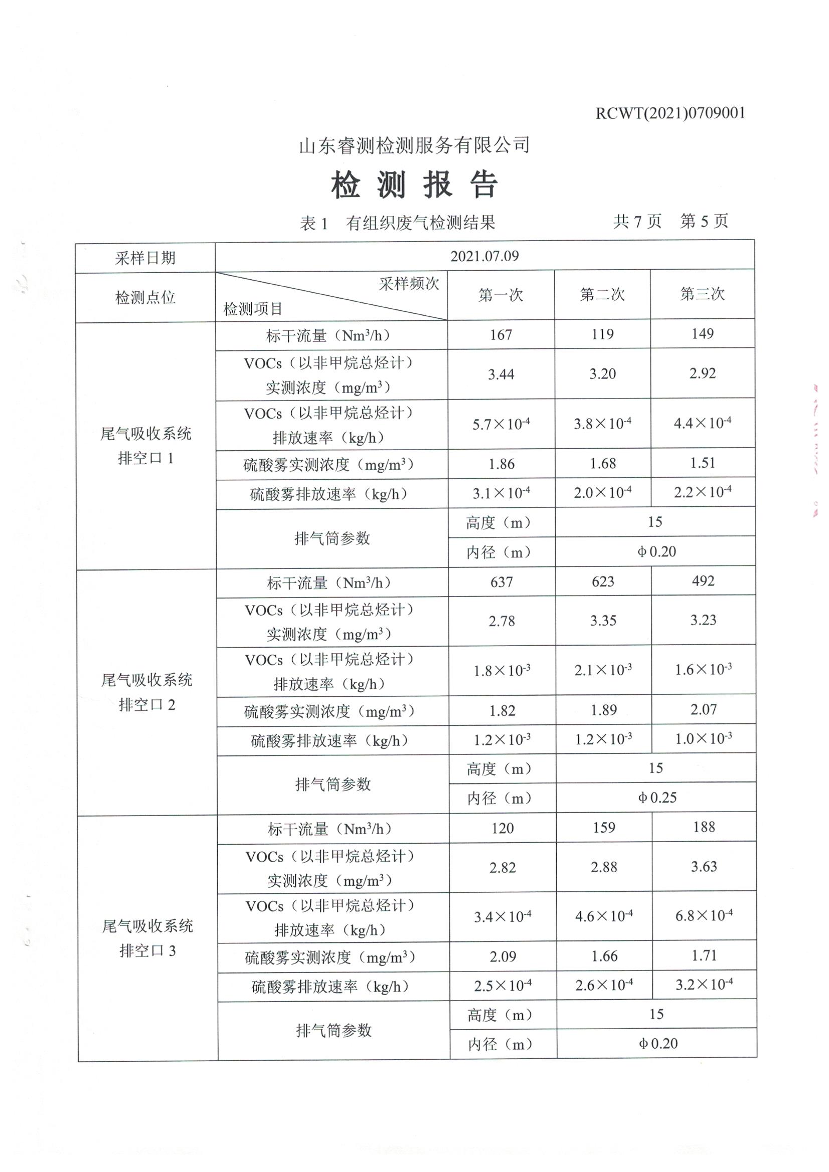 2021年7月份自行檢測報告