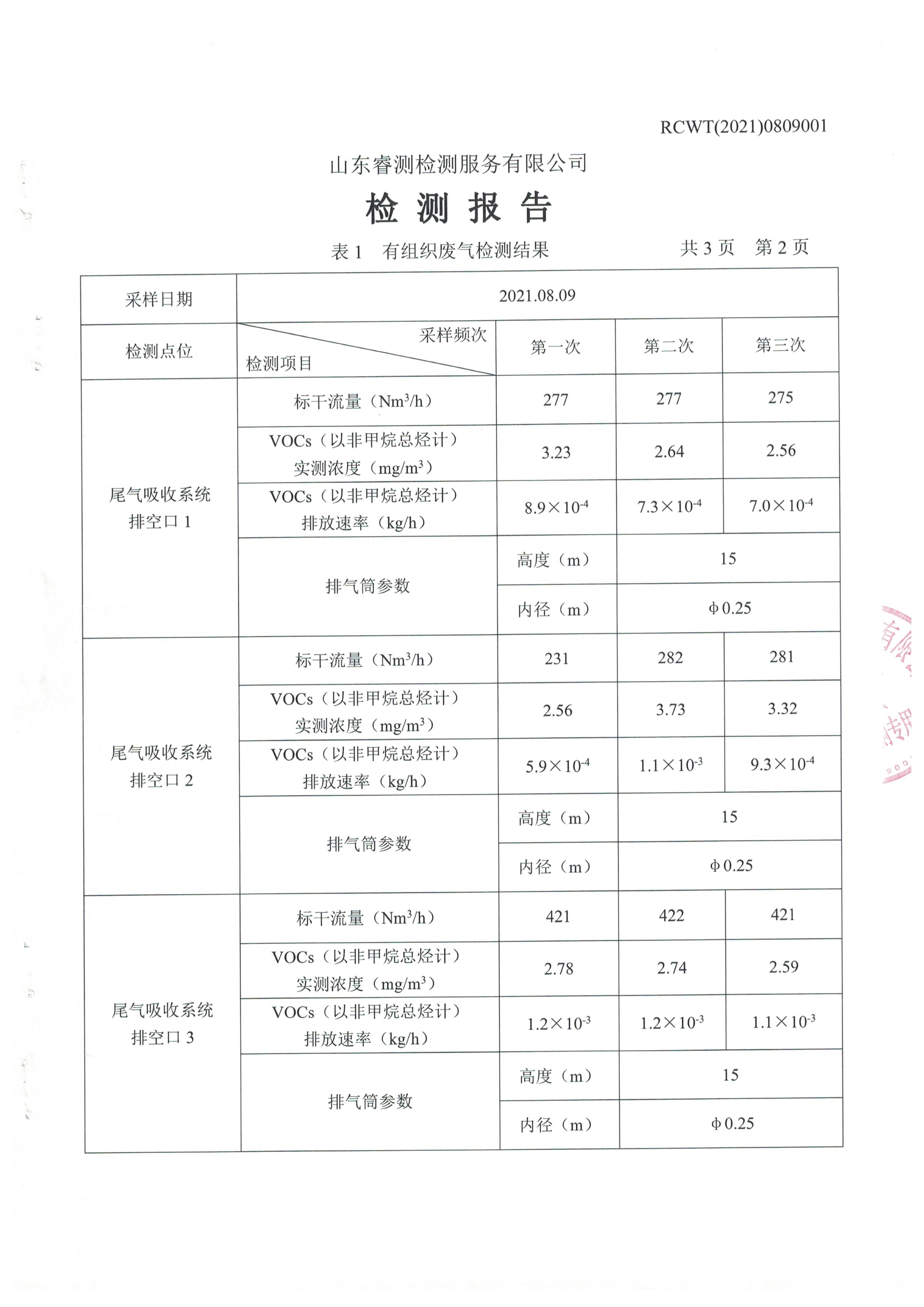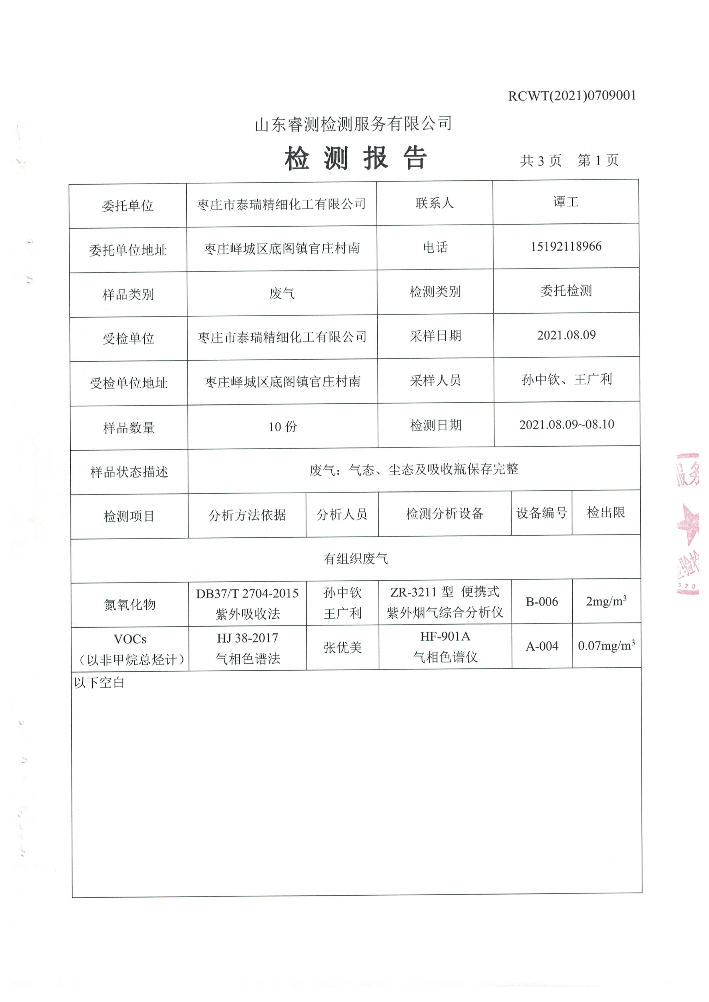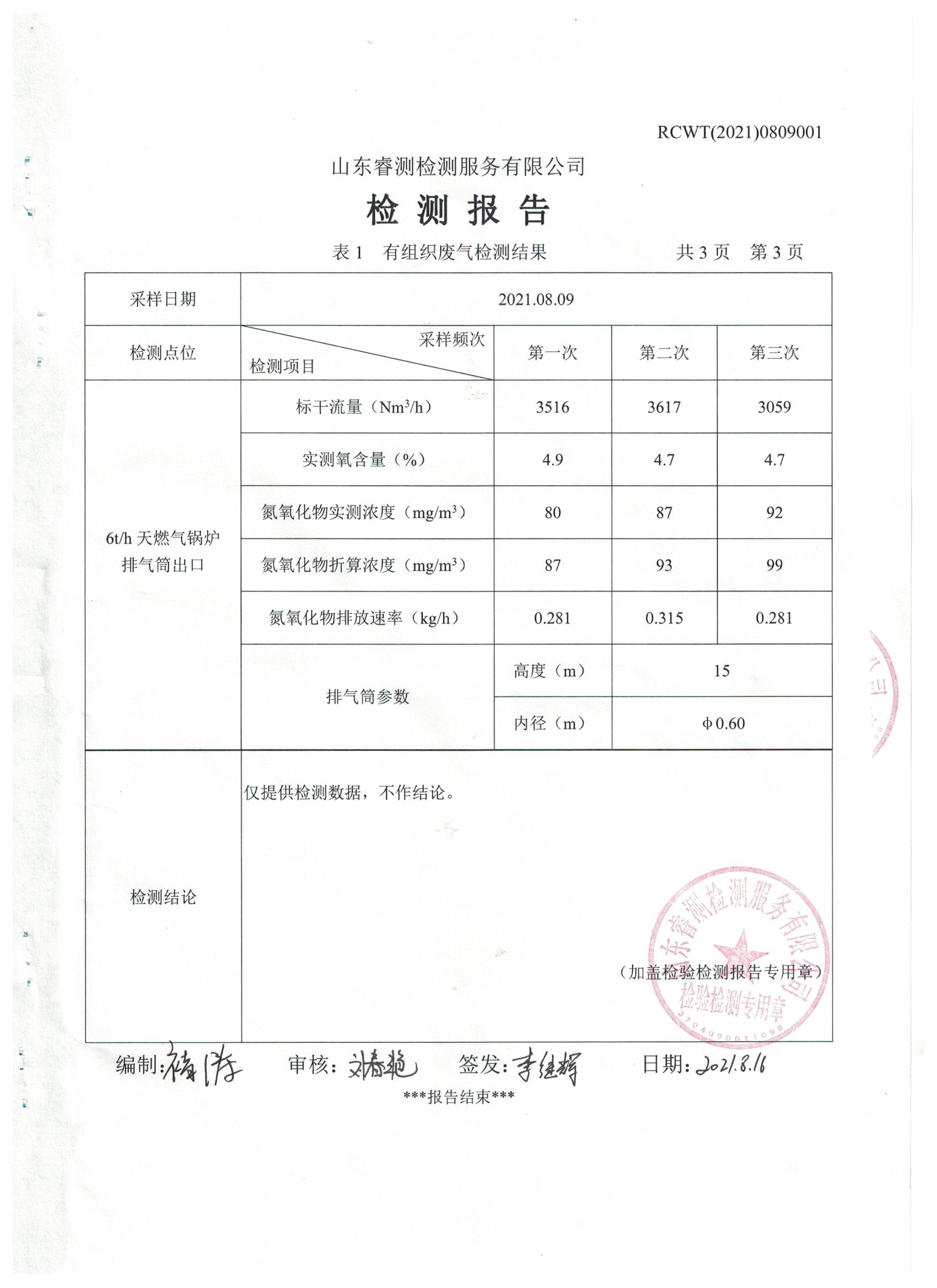 2021年8月份自行檢測報(bào)告