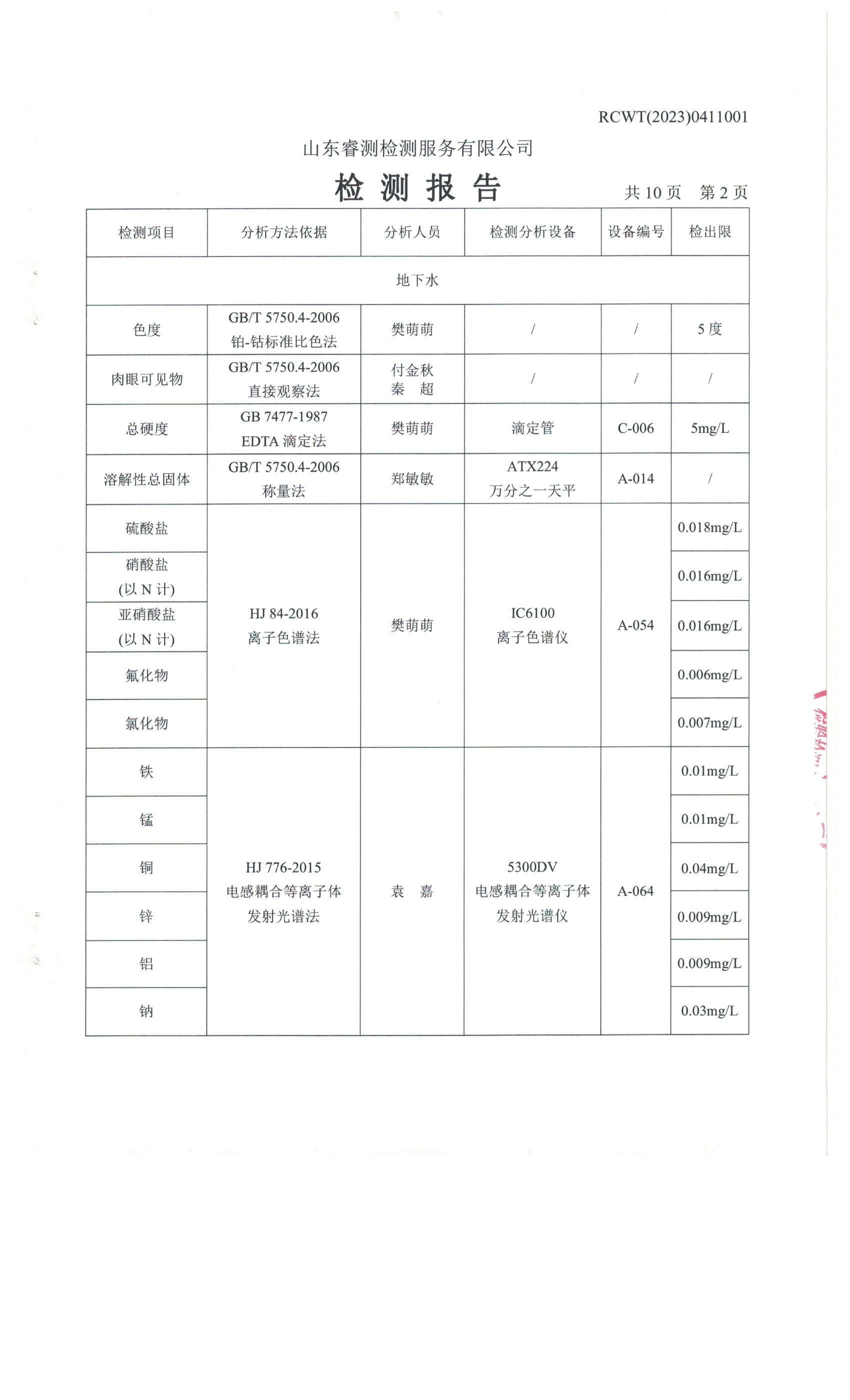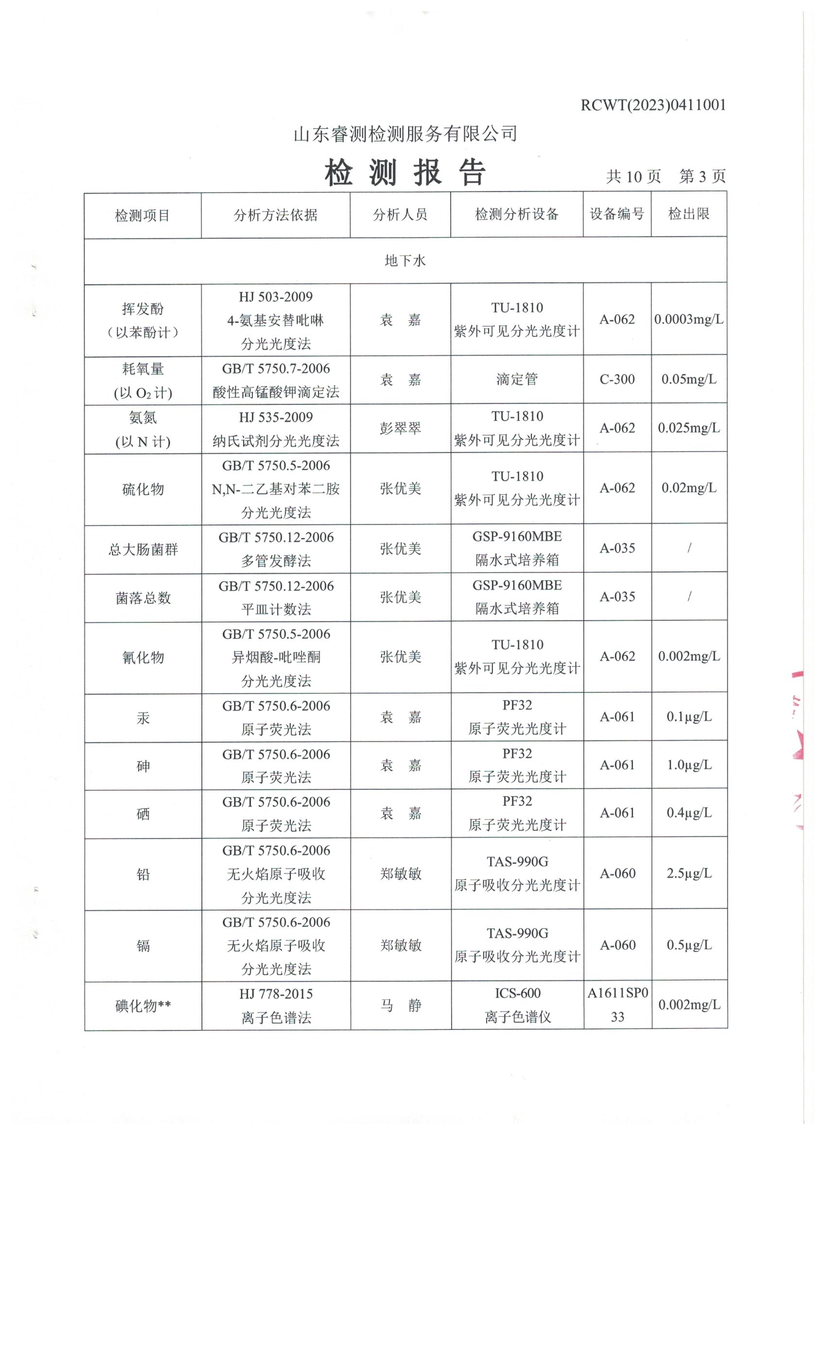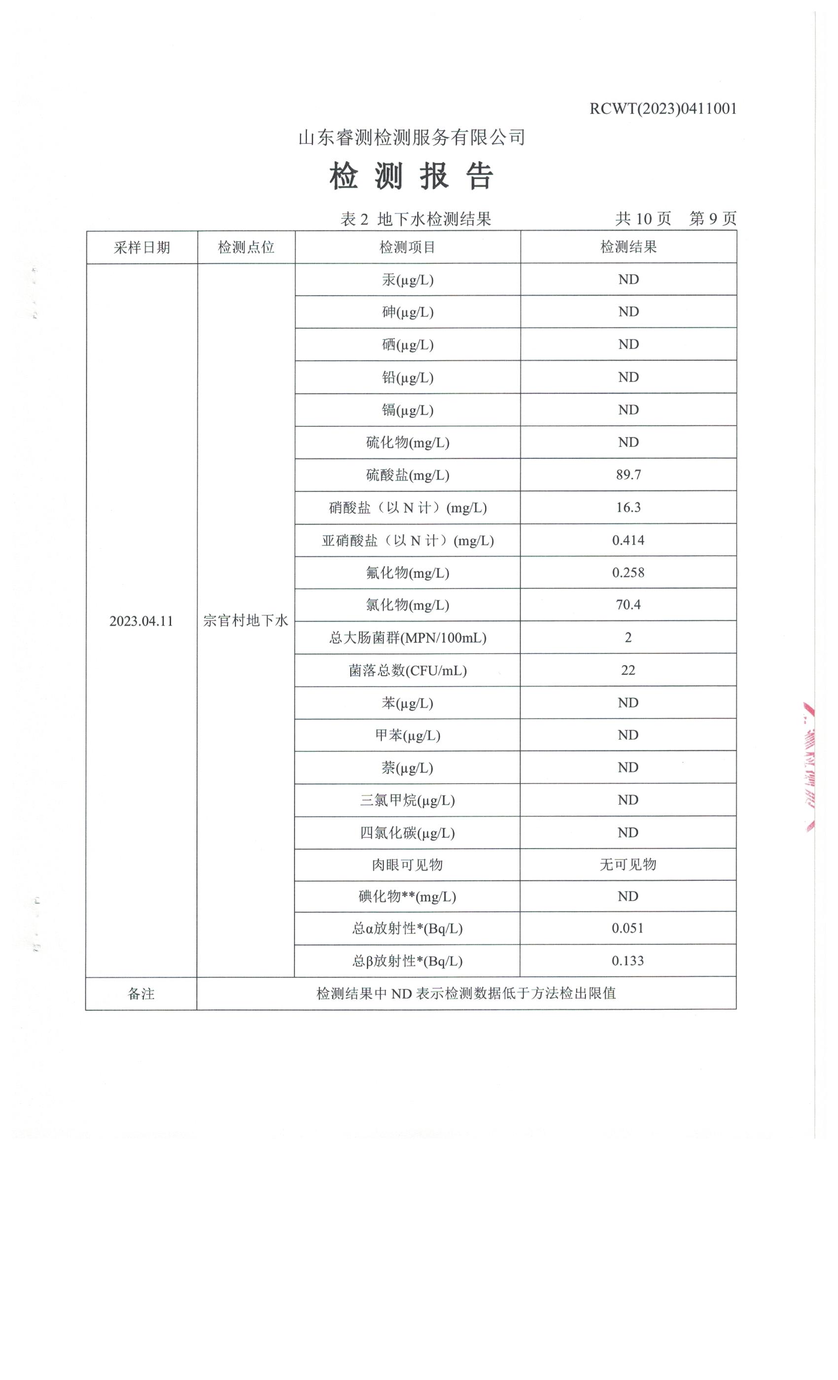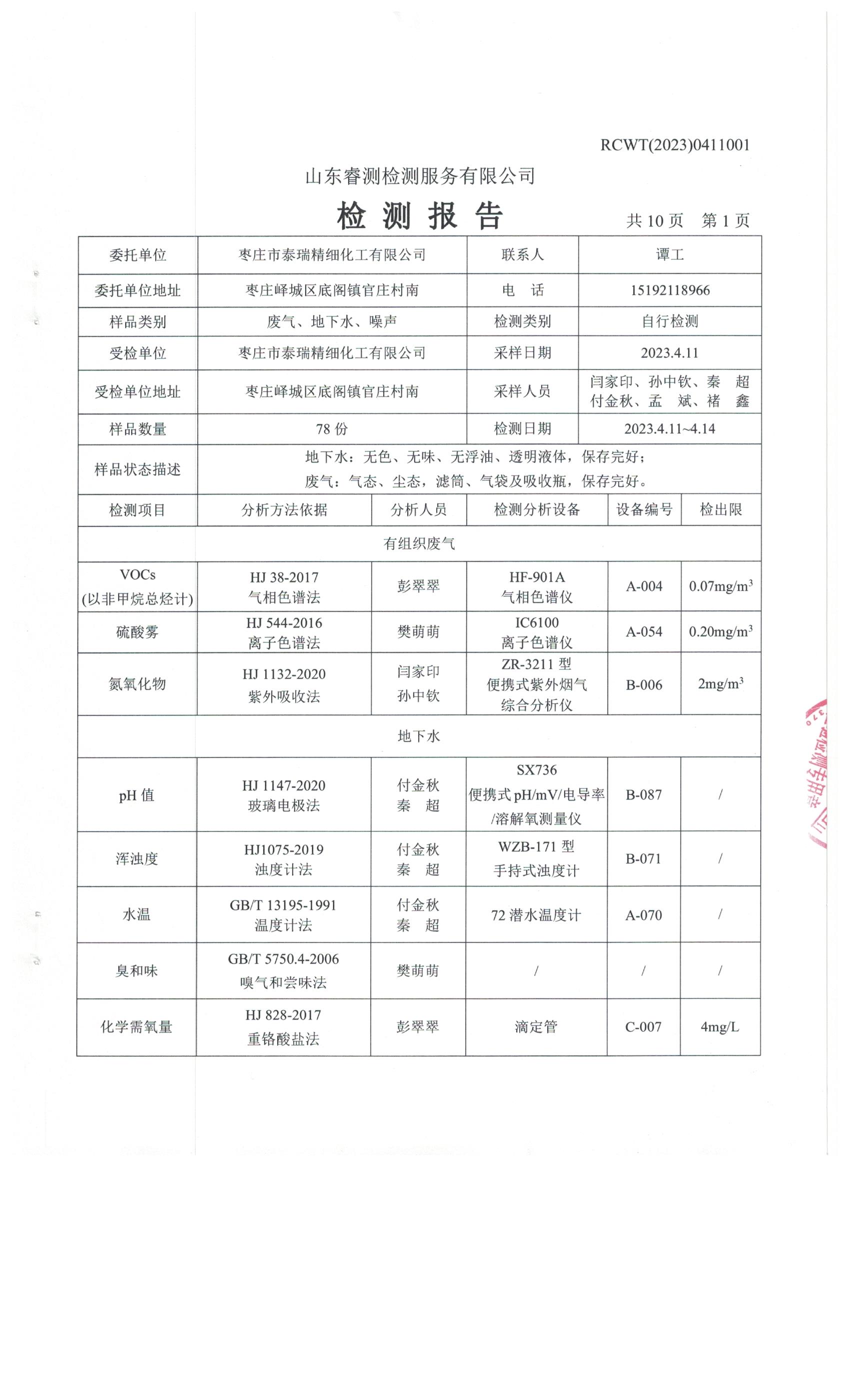 2023年第2季度(4月份)檢測報告