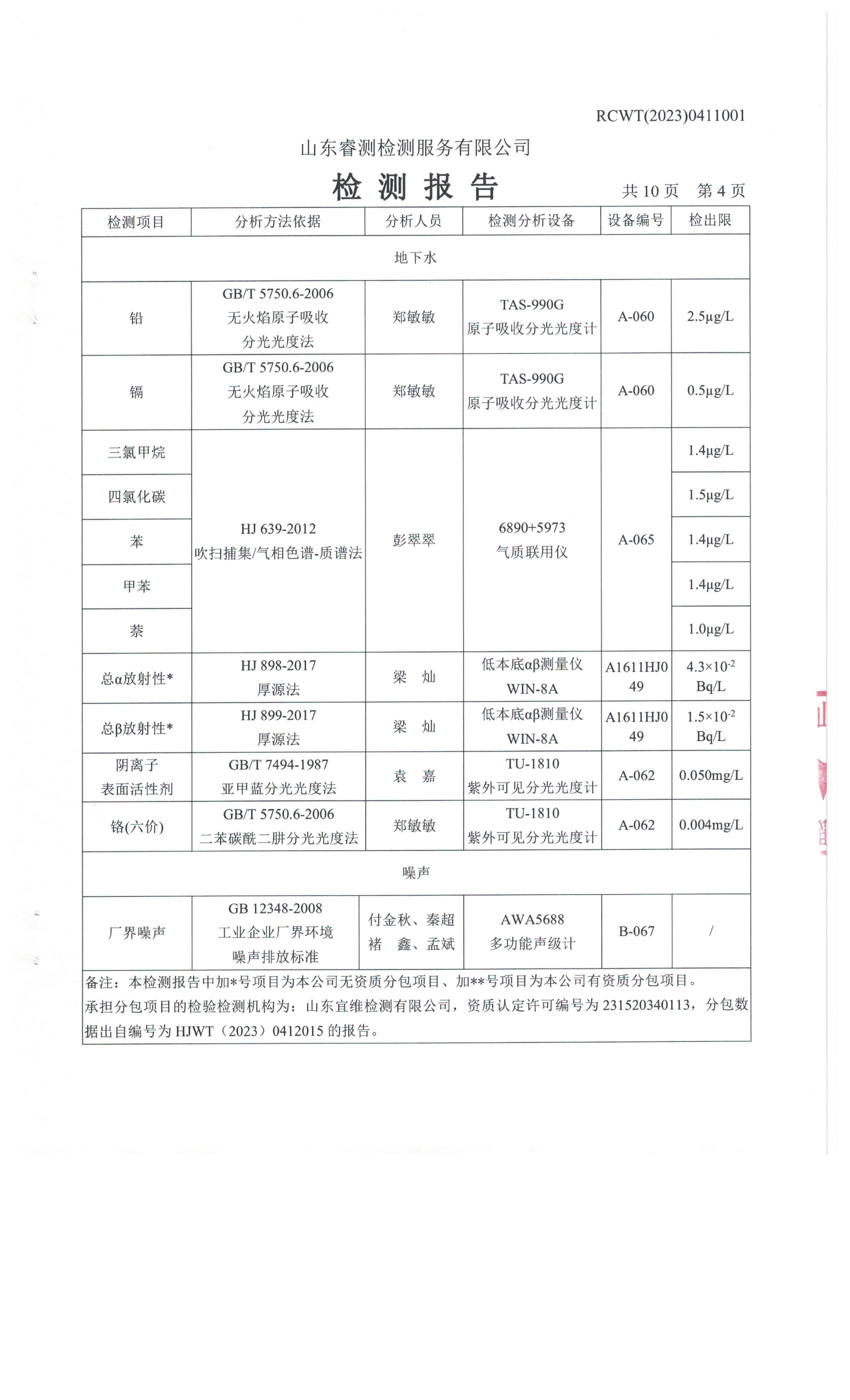 2023年第4季度(10月份)檢測報告