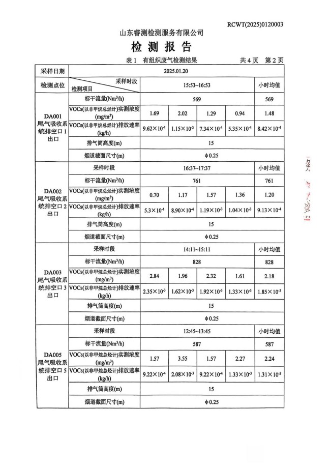 2025年第一季度廢氣、噪聲檢測(cè)報(bào)告