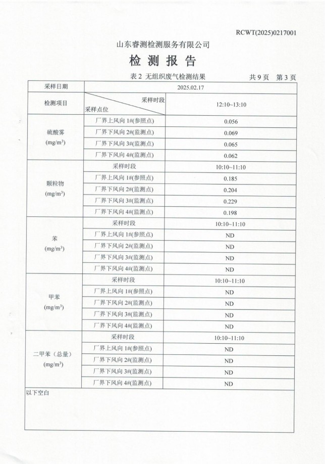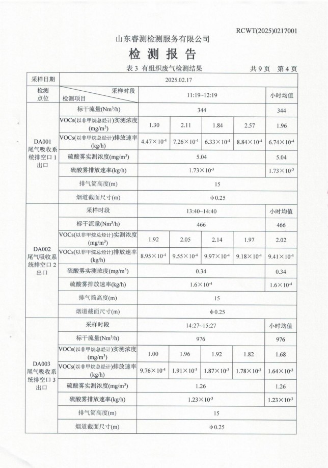 2025年第一季度廢氣、噪聲檢測(cè)報(bào)告