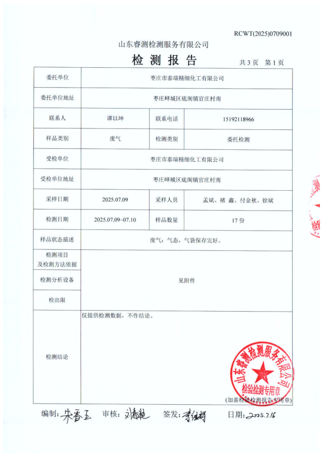 2025年泰瑞精細(xì)化工有限公司土壤檢測報告